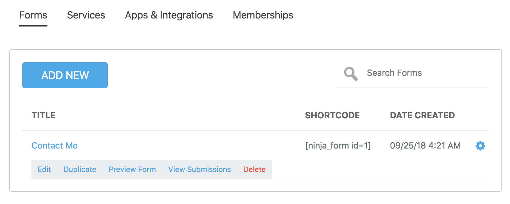 Hover over the form you wish to edit, and click the gear icon. Next click the ‘Edit‘ link.